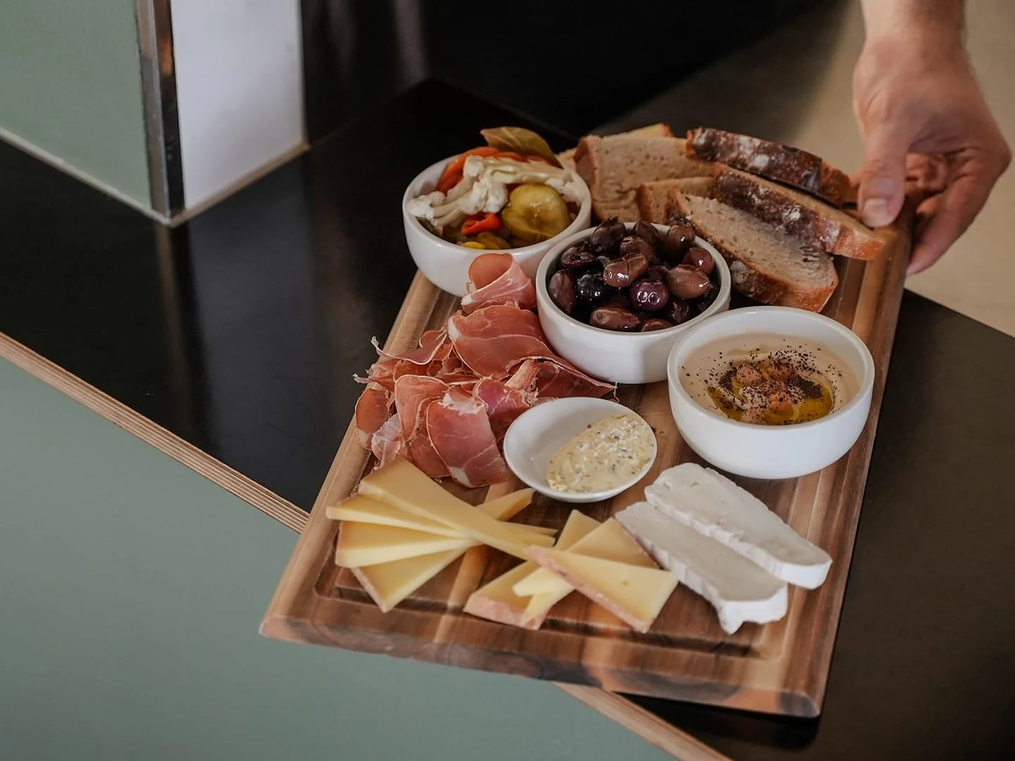 Von großen gemischten Platten bis kleinen Snacks: Frisches Brot, ausgefallene Dips, regionale Käsespezialitäten und selbstgemachte Pickles.